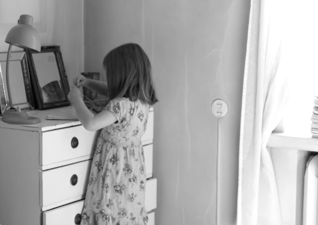 Adding to the theme of children's rooms, here's a glimpse of our daughter's room from this morning - the rest of our home isn't looking quite as Christmassy yet, but during the weekend I've been trying to get some shots of the kids for this year's Christmas cards. A rather blurred catch in this dimness.